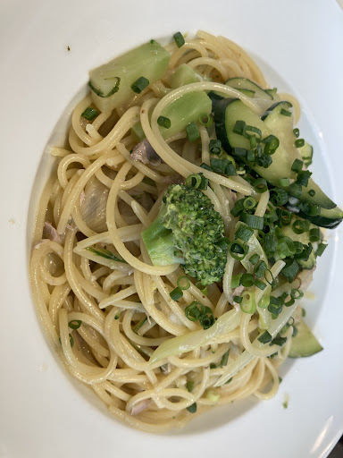 Tucked away just minutes from Ebisu Station, Trattoria Vivace Ebisu surprises with its unexpectedly spacious dining area hidden beyond the entrance. Despite the intimate front room, the back opens up to a larger space perfect for casual gatherings. The meal began with a refreshing green salad and a medley of marinated olives, followed by a rich and creamy liver pâté served with rustic bread – each bite smooth and flavorful. The vegetable spaghetti arrived al dente, perfectly coated in a fragrant olive oil and topped with a generous dusting of Parmesan. The highlight, however, was the tender chicken simmered in a rich tomato sauce – comforting and robust. Dessert was a silky panna cotta, delicately sweet with a hint of vanilla.