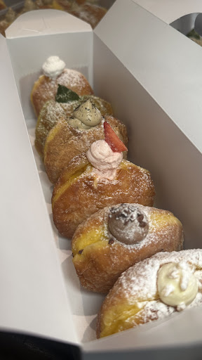 看板メニューのトリュフドーナツはふわふわの軽い生地にしっかりとしたトリュフ塩がまぶさっていてとても美味しく、甘いものが苦手な家族も大絶賛しておりました。 他商品はすぐに食べるタイミングが無かったので1度冷蔵庫で冷やしてから食べた為、生地がやや固くなってしまったのですが、それを加味してもとても美味しかったです。 可能であれば購入後すぐに食べることをおすすめします。 中に入っているクリームが自分にはやや甘味を強く感じたので、今回はプレーンは購入しなかったのですが、生地自体がとても美味しかったのでクリームが入っていないプレーンも食べてみたいと思いました。