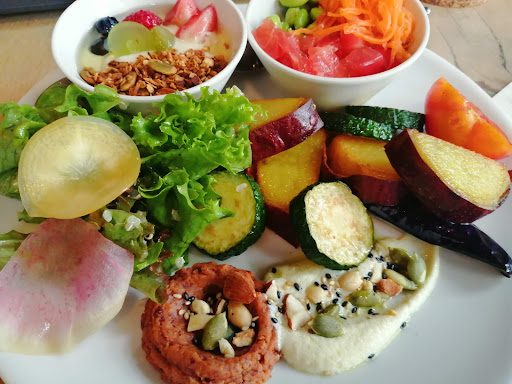 This was the Vitality Vegan breakfast plate. Flavorful and healthy, good ingredients. It's not cheap but the ambiance was perfect. If you're looking for a bargain this is not the place to go but if you want to place to use some Wi-Fi and enjoy the nice peaceful morning, this is it.