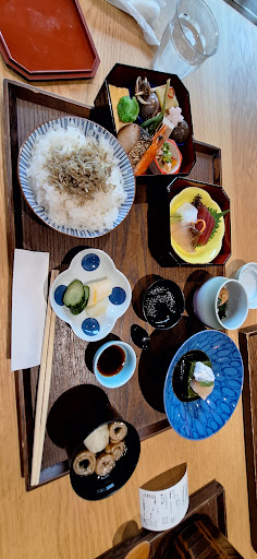 Tea, cakes & lunch dishes served in a calm, wood-lined space inside Shinjuku Gyoen National Garden.
