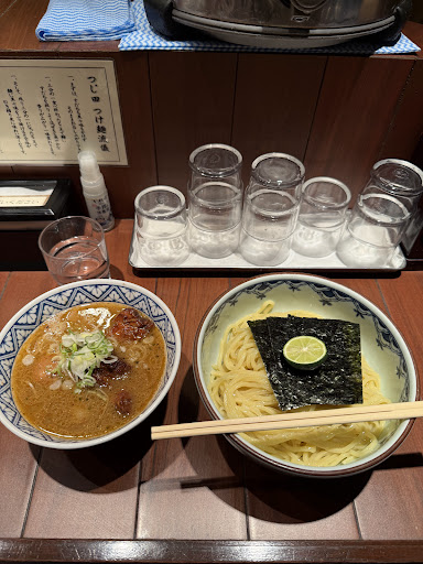 Read moreWas a busy small restaurant famous for locals. The main menu is Tzukemen, noodles coming with very heavy pork broth which is supposed to be hot dipping soup and served separately. So you need to dip only mouthful noodles into the soup. Locals surrounding me squeezed the limeish fruit, sudachi after having 1/3 noodles, then put some blackish powder, black pepper or something after having another one-third.