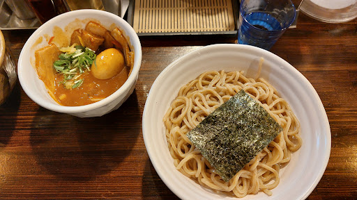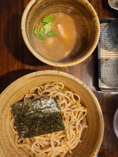soooo good! we were allowed to choose from three different noodles, and i got the soba. there is only one type of broth and you can choose to have it spicy. the dipping broth is very rich and tasty, and it isn't heavy. i got the spicy set with extra slices of meat and the egg, and i think it was worth the upgrade! the spice level is not mild like other places and it made me sweat as i kept eating 😆 they also have a pitcher with some broth/soup in it to dilute the dipping broth when youre out of noodles, and it makes it taste so good to drink on its own (very salty otherwise). they also have options for extra toppings on their ticket machine, but it's all in japanese so i suggest just translating it with your phone if you can't understand. they only have counter seats and doesn't seat a lot of people, so i think it's better to get there ahead of time to avoid the line. there were mostly locals asides us, so i think it's pretty popular! staff were also very friendly! would come...