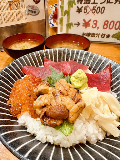Read moreFresh salmon and tuna sashimi and donburi at outer Tsukiji Market. We went there 17 May 2019, ordered salmon and tuna donburi 700Yen (1 egg roll/tamago sashimi, 3 slices of tuna sashimi, 3 slices of salmon sashimi, and big portion of seasoning rice with seaweed flakes), additional topping for hubby as he would like to eat sashimi only without rice (end up he helped me finished my rice as my donburi came with big portion of rice): 3slices of salmon sashimi 300Yen and 3 slices of tuna sashimi 300Yen. The miso soup (free of charge) is also tasty. Cold and hot ocha is complimentary. We went there for lunch, many people eat there but no queue as we faced during my previous visit in 2014 if I'm not mistaken before the tuna auction was moved from...