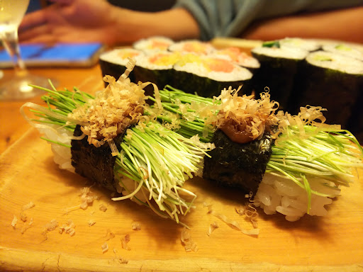 We had a lot of food for lunch here today, in the special part where you have to take off your shoes (usually I'm never seated in those areas as a foreigner). But, I came here with a group of native Japanese speakers, so I was lucky ^^ We had sushi, tempura, chawanmushi, karaage, salad and miso soup. And it was all delicious ^^