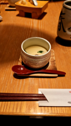 As for the food, everything was delicious. So glad we decided last minute to order the tamago egg as it was one of the highlights. Browned on the bottom, sweet, warm, and flavorful. We also got squid, and a squid and...