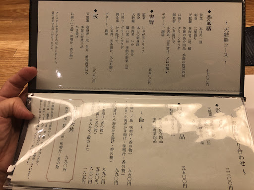 私は店長おすすめの天ぷらのコース「吉野」(5500円)を堪能させていただきました。