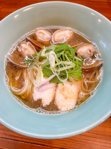 大盛サービスだったが伝え損ねた。ほどなく着丼。 麺は細麺でほどよくスープがコーティングされ、カタメの食感で旨い。 スープ、ヤダ~これめちゃ旨!貝の旨味たっぷりで醤油と共に豊醇で、酒の残った身体に染み渡る。こりゃ~タマラン♪ 鶏チャーシューも柔らかく、珍しいアサリのトッピングも良き。 締めのライスどぼんもめちゃ旨だった。 疾風のごとく完飲完食。大盛にしなかったのを後悔したのは言うまでもない。