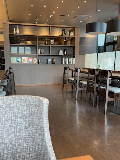 The cafe is not very crowded throughout the day (especially at night) because it's somewhat far from Hamamatsucho Station (Takeshiba Station is closer) and there is no underground passage to make it easily accessible even in bad weather. Also, due to the management of the building in which it is located, the cafe closes at 7:00PM on weekends and holidays. On the other hand, the interior is spacious and has a high ceiling, giving it a sense of openness. There is also open terrace seating, so on a sunny, calm day, it's a good idea to enjoy your ordered drink on the open terrace seating. Because I used the restaurant at night, there were few people chatting, and even if there were, the open space is comfortable because the sound of chatter does not echo so loudly. Some seats are equipped with power outlets for recharging, so some people can be seen working on their PCs. The west side of Hamamatsucho is crowded with commercial facilities (especially during lunch hours) and can be quite uncomfortable, but if you are looking for a place to relax and unwind, I recommend this cafe. But be aware that it will be crowded when there are events taking place at the Takeshiba Passenger...