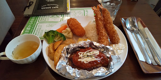 う~ん全てが 冷凍食品のような気が…。(ハンバーグ、エビフライ、カニクリームコロッケ、フライドポテト、温野菜までも) この内容で 1800円は…。