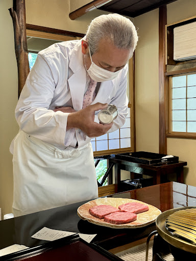 Long story short we went up to Mt Takao for the day and decided to go here for lunch on the recommendation of a friend. As we arrived by Car (also accessible by metro/taxi when you arrive at the train station) and were warmly greeted and directed by their parking staff. We get out of the car and a hostess is there ready to guide us to the main front reception area where we are taken for registration. (we reserved 2 weeks in advance) The front reception is a moderate sized house that is part of a little village of houses, stream, nature and other amazing sights (see the photos). You are taken to your own little house in the "village" where they sit and serve you dinner/lunch.