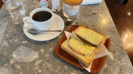 が、ここはコーヒーでしょ、とブレンド☕。 トースト、外はカリッと中はフワモチで美味い😋