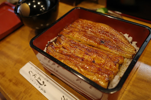I visited 'Unayoshi' as Plan B after the unique restaurant that only serves hamburger meals for lunch twice a week in the neighborhood was unexpectedly closed. The restaurant is compact, with a counter right at the entrance and table seating in the back. I ordered Kimo-yaki (grilled liver), Shiro-yaki (grilled eel w/o sauce), and Unaju Matsui (eel rice box). While the Kimo-yaki and Shiro-yaki were tasty in their own right, the Unaju was particularly fantastic. Despite the eel being slightly small, it was nicely fatty and lacked any muddy taste. The exquisite grilling of the eel, coupled with a light sauce, created a superb taste experience as each grain of the slightly hard-cooked rice crumbled in the mouth. The Matsu set , which comes with one whole eel, liver soup, and pickles, was a great value. If I have the opportunity to visit the Toyocho area again, I would definitely want to revisit...