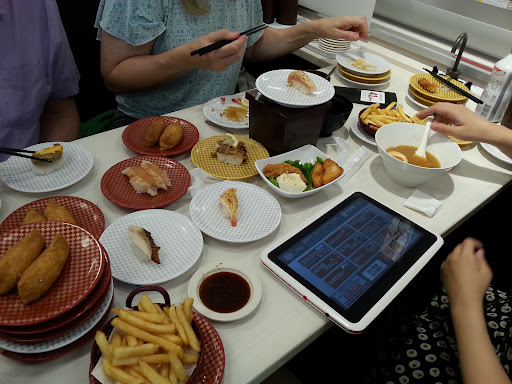 Read moreAlways a great experience! Yummy sushi delivered to your table by bullet train! Fried foods, soups and desserts are also avalable. You will get a wide variety of fresh sushi at a great price! My family of 3 (2 adults and a 10 year old) eat to our fill for about 4000 yen. Parking is provided, tablets on the table used for ordering support...