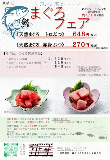 Read moreテレビでも話題になっている魚伊三さんにて、毎月末開催している「魚伊三まぐろフェア」を紹介します!