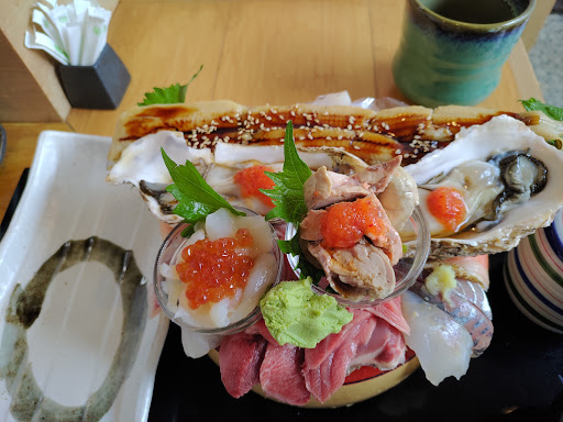 【2021年10月初投稿】 以前から少し気になっていたお店でランチで行ってきました。 土曜日の回転10分前に到着。車を停めてお店の前で待っていたら開店時間前でしたが、 準備が出来たという事で店内に案内してくれました。 入店時にアルコール消毒あります。 店内は4人掛けのテーブル席が3つとカウンター席があります。 テーブル席の間にはついたてがありカウンター席は2席位おきにアクリル板が設置されており新型コロナ関連の対策も出来ている印象でした。 テーブルに座ると大将が、おすすめを説明してくれます。 おすすめは、プレミアムおまかせ丼(3500円)とのこと。 私は、あなごくん(3000円)目当てでしたので、あなごくんを注文。 連れは、プレミアムおまかせ丼を注文しました。 プレミアムおまかせ丼は、日によって内容が変わるようですが、通常のおまかせ丼に対して、生牡蠣、つぶ貝、白子などが追加で盛られるとのことでした。貝が苦手ならカニにも変更できるとのことで臨機応変に対応してくれるみたいです。 あなごくんは、その名の通り、穴子一本が別皿に盛られた丼で、どんぶりには、小さめに刻まれた、サーモンとマグロ、そしてイクラに生玉子が盛られた海鮮丼でした。 その他、味噌汁(あら汁)と茶碗蒸し、デザートがついたランチセットになっています。 穴子はふわふわでとても美味しかったです。サーモンやマグロも美味しかったですが、おそらく寿司ネタに出来ない部分を細かくカットしている印象でした。少し筋ばったネタもあったのでそこは少し残念な所。 連れのオーダしたプレミアムおまかせ丼は、とても豪華な丼で、いろいろな種類のお刺身が沢山盛られた丼の上に、さらに小皿に盛られた、ネギトロ、白子、そして、つぶ貝と生牡蠣。とても豪華な丼でした。 連れもとても満足していましたが、刺身はやはり尾の方の部分もあったとのことです。 その辺りはサービスランチだから仕方ないのかもしれませんね。 なかなか見栄えの良いランチセットなので、話のネタに食べるのには良いかもしれません。 きさくな大将が接客してるお店です。 駐車場が店の横と裏に合計7台分ありますが、何しろ狭いので大型車は結構厳しいと思います。 私は退店後に車を出すのに苦労しました。隣が軽自動車だったので良かったですが、隣も大型車だったら出せ...