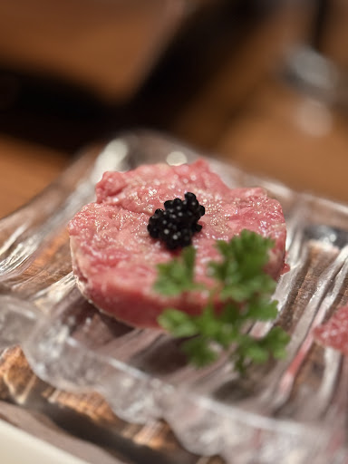 ・3 Kinds of Appetizers ・3 Kinds of Fresh Raw Meats (like yukhoe & tartare — stunning presentation) ・Thick-Cut Premium Black Tongue ・Selected Wagyu Harami ・One Premium Salted Cut (chef’s daily pick) ・Choregi Salad ・Chateaubriand (melt-in-your-mouth perfection) ・Korean-style Beef Bone Soup (Komtan) ・Sirloin Sukiyaki (dipped in egg — unforgettable) ・2 Premium Cuts with Sauce ・Yaki-shabu (thin, rich, quick-melt bliss) ・Choice of: Ushigoro Curry / Cold Noodles / Komtan Noodles / Spicy Teuktan Noodles ・Choice of Dessert (I chose the velvety pudding — pastry-chef level quality!)