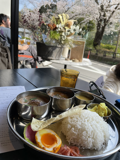 Read moreFound this new neighborhood restaurant from Google Maps news and tried it out! Sakura were in full bloom in front so I chose table near the open deck. The interior looks like a cozy cafe, it doesn’t look like an Indian restaurant. I chose the two curry plate: it came with egg, pickles, dal soup, potato salad and rice with cracker. Curry was very delicate with a lot of spices and elegant choice of vegetables. It was tasty for a Japanese liking, but personally I am more for strong flavored curry, so it was a bit too light for me. The staff were friendly, food was quick and nicely presented. The chai was very good too. I need to try the...