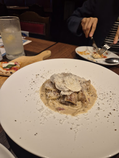 また、知人はpizza、私はパスタを注文。 知人は既に私が来る前にpizzaをオーダーしており、30分遅れて到着した私はパスタを頼んだ5分後にはパスタが運ばれ。。 ピザはその後、15分後に。。pizza、忘れてたのでは。 2つ同時に運んで欲しいとは言いませんが、ちょっとバランス悪すぎる。今回はシェアはせずにいたので、私がパスタを食べ終える前にpizzaが。(それも催促してやっときた、という。催促しなかったら、完全来なかった。) それに、取り皿もなし。 フリードリンクの氷はなし。きれたまんま。