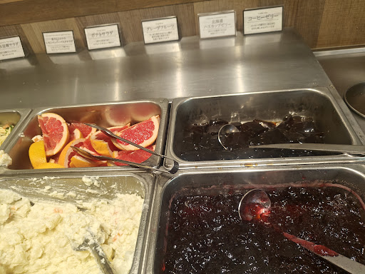 I couldn’t wait and went to get my salad right after ordering on the tablet. I was happy to see they had grapefruit, which is rare! Among the different items, my favorite was the broccoli, carrots, and corn together with sesame dressing. The broccoli was so soft and sweet. On the other hand, the spaghetti at the salad bar wasn’t good, they really need to improve that.