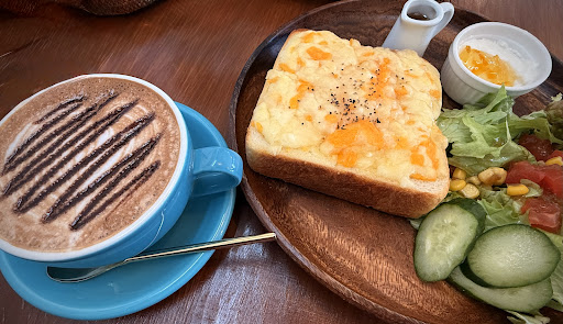 Read more3回目の来店。This was my third time stopping by. 最初はチャイラテ。このチャイラテのスパイシーな香りがとても気に入って、2回目は大好きなフィッシュバーガーがあるか探したところアランフィッシュバーガーという竹炭のバーガーをメニューに発見!テイクアウトで自宅で人目を気にせずゆっくりと味わいました🍔🐟今回は3回目。散歩していて何気なく足が向かいました。 朝はモーニングメニューをやっていて、写真のチーズトーストを注文。これもまた好みでメープルをかけて頂くスタイルで個人的には朝のゆったりとした時間にぴったりの美味しいメニューでした。珈琲の香りも感じながら素敵な暖かい朝食になりました。ありがとうございます。また利用させていただきます。☕️(写真と動画は朝イチの利用者が少ない時に撮らせて頂きました。)