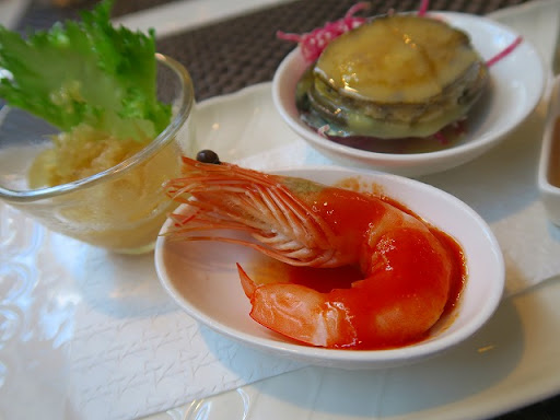 「天使海老のトマトソース」 私が大好きな天使海老さんだ!殻が柔らかいので殻のまま食べられるとのこと。天使海老をボイルしたものに、さっぱりとしたトマトソースをかけたものです。プリプリの海老とトマトの酸味が絶妙です!さっぱりしているのでいくらでも食べられちゃいそう♡ 「ホタテの貝柱の白味噌ソース」 プルンとしたホタテさん美しいです♡柔らかくとろけるような食感に濃厚な白味噌のソースが相性抜群です! 「卵黄の紹興酒ダレに漬け込んだもの」 一瞬つやっぽい綺麗なトマトだな~と思ったらなんと卵黄でした!紹興酒で作られたタレに卵黄を漬け込んだらしいです。初めていただきます♡卵黄のとろっと濃厚な味わいに紹興酒が合いますね~ワインの肴に合いそうです♡ 「トマトのグレープフルーツソース&チーズの酒粕漬」 へぇ~この組み合せは初めてだわ(^O^)野菜と果物を組み合わせるならコレをオススメしたいですね。トマトは湯引きされ塩水に漬け込んであるそうです。グレープフルーツの酸味とトマトの甘みがすばらしくマッチしてます!これはサッパリして家でも試したくなりますね。チーズの酒粕漬は、珍しい組み合わせですよね~濃厚なチーズと酒粕の甘みが意外にも絶妙でした!お酒とよく合います♡ 「クラゲの胡麻ソース」 クラゲのコリコリした食感と濃厚な胡麻ソースが相性抜群!食欲をそそりますね~ 「蒸し鶏のヨーグルトソース」 見た目も綺麗な蒸し鶏さん!あっさりした蒸し鶏に酸味の効いたヨーグルトがナイスな組み合わせですね!なんだかクセになってしまう逸品です。 「鯵の酢〆茗荷添えを紅油とニンニク甘辛醤油ダレ」 最近、鯵食べてないなあと思っていた時に嬉しい!甘辛醤油タレが鯵に絡んで酸味と甘味がたまりません!