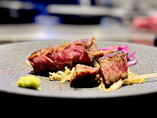 Made a reservation and had the dinner course which included a whole live abalone and spiny lobster cooked on the teppanyaki grill as well as your choice of wagyu cut (I had the sirloin). The meal started off with a fresh crab and fish roe salad, followed by a sea urchin handroll which was delightful with the warm grilled rice on seaweed. The abalone and lobster was cooked well with a soft bouncy texture, not much has been added so you can enjoy the natural flavor of the seafood. A thin crepe filled with mushroom and cheese was served before the main wagyu meal which included a fire show. The sirloin was cooked medium rare and is on the leaner side but was very tender. The course was pretty good overall especially considering the price; and the chef and the staff...