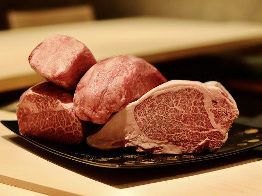 éœäŒã®å§éšããå°ãå€ããééãªæ°å¯çºã®è·¯å°è£ã«åºãæ§ããã2022幎6æã«ãªãŒãã³ãWAGYU USHITOMI GINZAãã§ã¯ã黿¯åçã«åå£ã®ç§»ãããç¹ã亀ããèå²ç¹ã楜ãããã