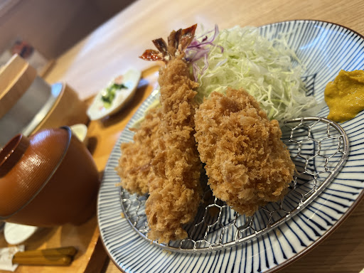 Read moreランチで一人利用しました。 夏季限定の向日葵というセットを頂きましたが衣は軽くさっぱりしていてもたれません。 キャベツ、ご飯、お味噌汁がおかわり自由でキャベツをおかわりしました。 ご飯は小さな釜から自分でお茶碗によそいます。冷たいお茶には氷、小さな急須も付いていたり心遣いを感じます。 おもてなしされてる感。。。良いです。