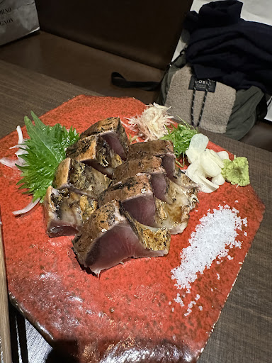 Casual, wood-lined restaurant offering small plate meals cooked over flaming straw, plus local sake.