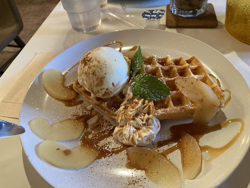 Food is pretty reasonably priced for the portion. My apple cinnamon waffles with caramel sauce had a creamy scoop of vanilla ice cream, but the waffles tasted similar to the make-it-yourself stuff at 3-star hotels’ breakfast.