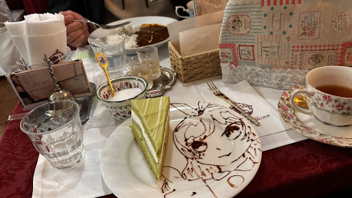 Speaking of, Tea is the Main Star here. I am not an expert, but i am sure the stuff they have there is really high quality and i believe they even import the Tea from the UK. Some Maids even have their own unique Tea creations. Of course you can also eat there. If you order something sweet like a baked Cheescake, be prepared for an unique Artwork from a Maid on the plate. In my case, i wore a "Oshi no Ko" T-Shirt at one day and one of the Maids (i think her name was Okome) noticed that and drew a part of it with a german word on my plate. I was so surprised to that attention to Detail that i had to call her to my table and thank her for it.