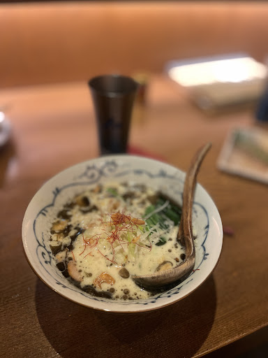 We came in not expecting much due to the rating but we were pleasantly suprised at the quality of the food. The items that really blew our minds us were he chicken neck, kinkan, and espescially the chicken ramen. The chicken neck yakitori was juicy, crispy, flavourful, and had a wonderful bite to it. The kimkan, which is an embryo of a chicken that is gently roasted outside wrapped in seaweed accompanied with a bit of wasabi was divine, exploding in my mouth, coating it with rich, creamy and umami golden liquid. Finally, the chicken broth ramen. The broth was so rich and flavourful, and you could tell it was boiled for a long time by the gelatinous texture of the soup and the way it coated your mouth. In addition to the amazing food the place has a warm, cozy vibe to it. Not to mention the inpeccable foreigner friendly service by the staff, as they all speak English. I would also like to mention the "boss", who is a charming, handsome and knowledgeable host who made the experience all the more unforgettable. It was truly a delectable experience, absolutely...