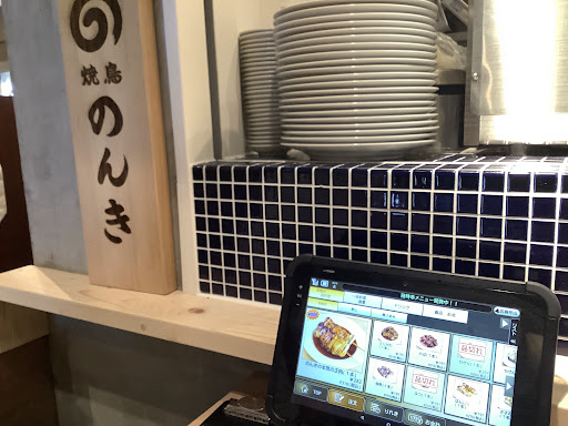 ここに着いたのが22時過ぎで、23時までの営業ということでどの店もお客さんは少しだけでした。そんな「カメクロ横丁」の奥の方にあった「焼鳥のんき」に入ってみましょう。ここは神田などにある「もつ焼きのんき」の焼き鳥店なんだそうです。