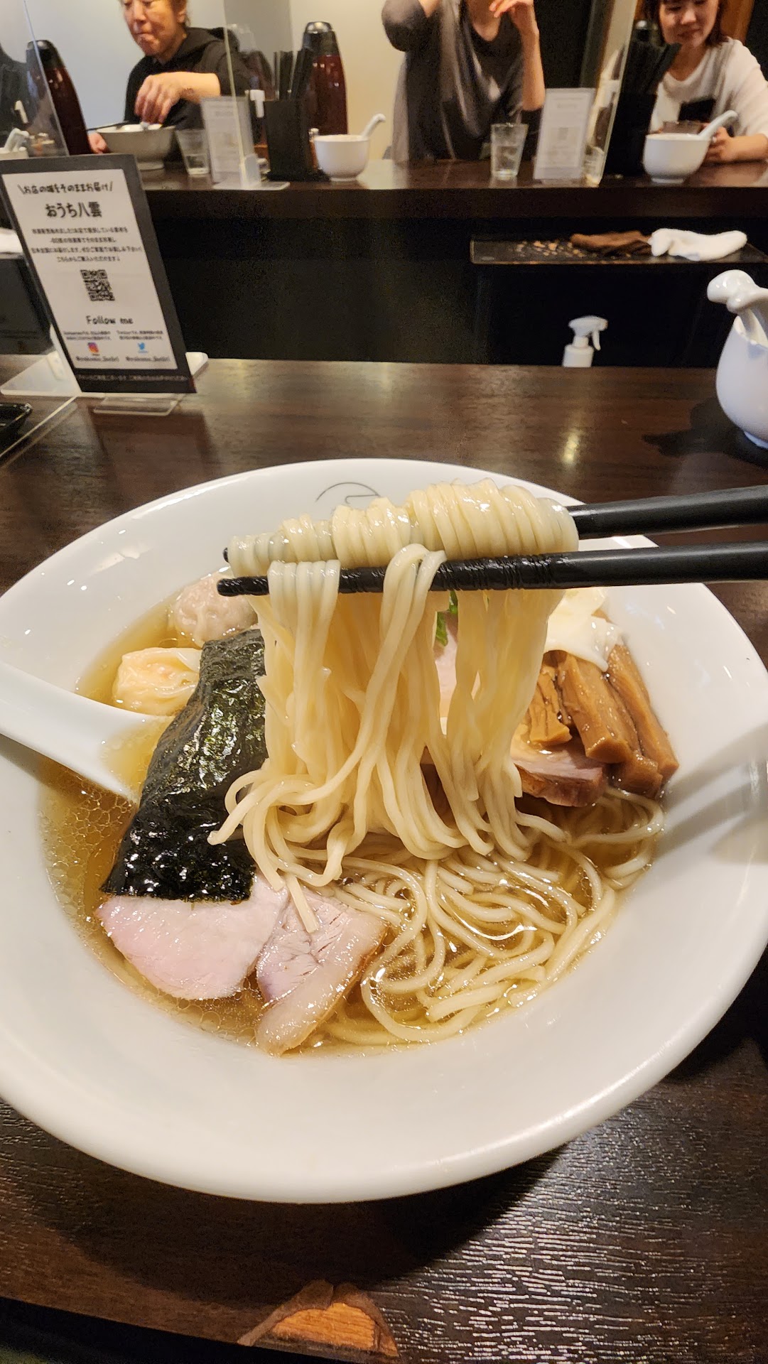 Read moreYakumo, the eight clouds! The Michelin bib gourmet Wonton Ramen! First, if you're coming here be prepared to WAIT. I came on a week day at about 12 noon and the line was looong. That said, people tend to eat quickly and line moves pretty fast. The queueanagamentbos top-notch: queue outside - go in - order from the machine - queue on the bench inside - come to the counter to be served.