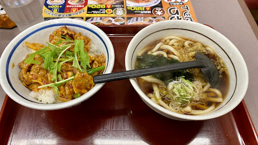 たぬきうどん、以前は麺が緩めでつゆの味も可もなく不可もなくといった印象を受けて足が遠ざかっていたのですが食べてみたら味がしみた麺は適度にコシがあってでも硬すぎず柔らかすぎずで好みな茹で加減で美味しかったです。これは前と違う印象だなと。 韓国風焼肉丼は思ってたよりごはん少なめでボリュームはまあ普通かな。味は悪くないけどめっちゃ美味しい程ではないかなと個人的には感じました。日替りなので曜日によって変わるので他も気になりますね。 うどんと丼の両方食べてみてちょっと物足りなかった(笑) 多めな食事を好む方はどちらか¥100だかで大盛りに出来るみたいなのでそちらの方がが良いかも。 結局、パンチを追加してごはん(中)も頼んでしまいました(汗)←食べ過ぎ