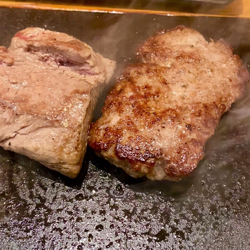 ロースステーキ100g、やっぱりバーグ100gのコンボ。