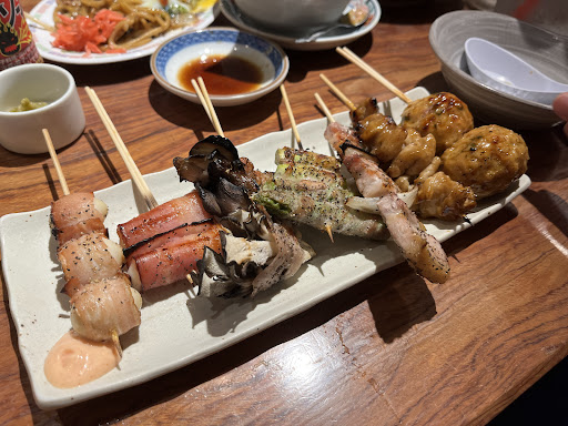 Where should I start… The toilet must be the worst I’ve been to in Japan. Dirty, smells like old pee (even the area near the bathroom) and has a some kind of a small tv-screen on with the staff speaking video playing, which makes the whole toilet-experience even more awkward :( Food in this izakaya has no taste :( Pork tripe skewers cooked poorly and smell just awful 🤢, takoyaki are completely raw inside. Gyoza were ok, but very greasy. Staff was nice and friendly, but the price/quality/sanitation rates are so off. I would never come near this...