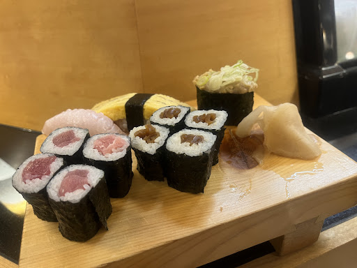 Read more「お寿司屋さんで呑む」という感じ。カウンターの中でお寿司を握ってくれる。魚がとにかく美味しくて、お寿司はシャリが小さめで食べやすいし、刺身盛り合わせも盛り付けが綺麗。お寿司も刺身も下駄(寿司を盛る木製の台)で出てくるのでちょっと高めのお寿司屋さんみたくてテンションが上がる。 お寿司の注文の仕方が「店員さんに」「紙に書いて」「スマホで」と選べる。その為なのか、席の下あたりにコンセントがあり、充電に使ってもOK。(お寿司以外は店員さんに頼むみたい) つまみも揃っているし、呑みながらお寿司をつまんで…が手頃な値段でできる、粋な飲みを演出してくれるかも。 テーブル席と小上がりの座テーブル席とあり、子連れでも大人数でも対応してくれる。 祝日の訪問だったからか無いメニューがあったので、ちょっと厳しめの星一つマイナス。平日なら揃っているのかも… かなり混んでいるイメージがあるが、来店時(19時位)はそんなに混んでなくて10分位片付け待ちをしたけれど、帰る頃(21時過ぎ)には私たちしか残っていなかったので、休日前や食事時を外せば並ばずに入れるのかも。 お店で呑むのもいいけれど、出前館で注文することもできるので配達してもらったお寿司とつまみで家飲みもアリ。配達してもらうと寿司折りで届くので何だか高級寿司屋のお土産みたいでこちらもテンションが上がる。 普通にお持ち帰りもできるっぽい。 店内は禁煙なのか、お店の前...