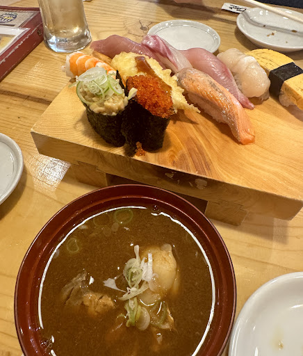 お寿司は1貫から注文でき、どのお寿司もネタが大きくてとても美味しかったです。 特に鯛と炙りサーモン。白身天は揚げたてで食感もふわふわでついおかわりしてしまいました。 個人的にシャリが少なめでネタが大きいのが好みなので嬉しかったです。