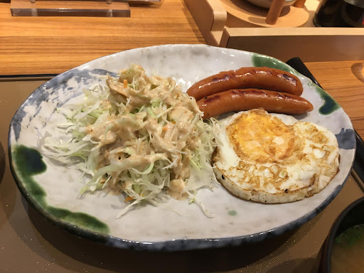 個人的には目玉焼き定食を食べることが多いんですが、目玉焼きを両面焼きにするようにスタッフの方にオーダーしてます。というのも通常の状態で出てくる目玉焼きが「ユル過ぎて」自分好みじゃないからです。