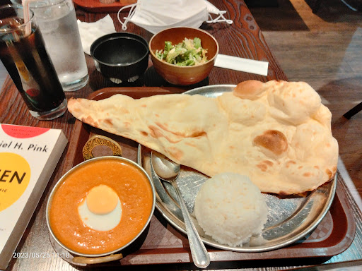 I went with a keema curry and egg set to see how far they pushed in the Japanese direction but it was pretty safely Indian. The spice level was good, though a bit slow to hit me. The naan was unusual in a kind of neutral sense, definitely not sweet nor yeasty. The rice, salad, and soup were all Japanese style, and I would say the salad dressing was above average. At first I was a bit put off by the lack of a fork, but I realized I had chopsticks. Kind of hard to form an overall impression, but I'll say it's a...
