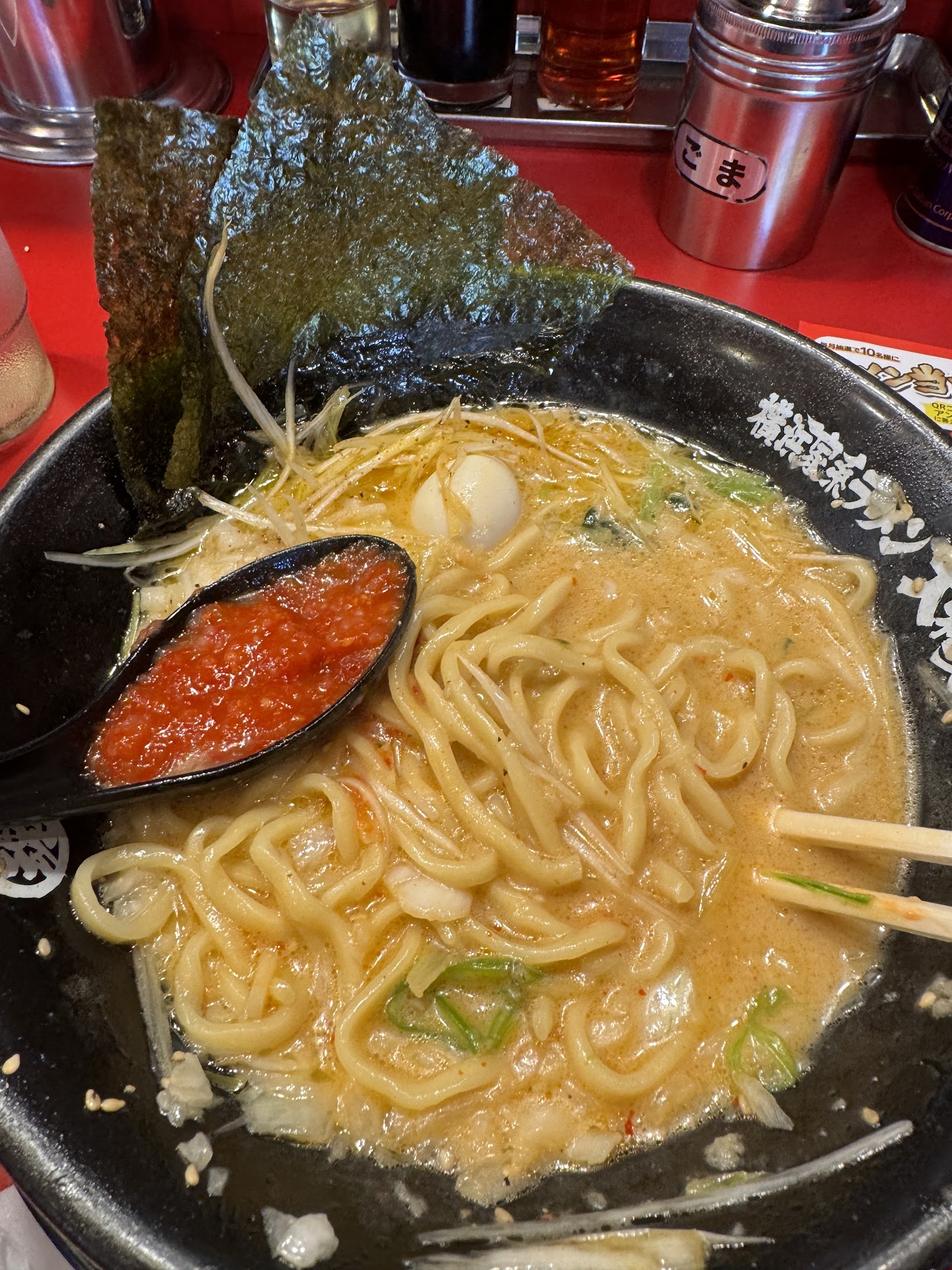 家系と聞いて安心できる美味しさです。 淵野辺店他も行きましたが、味にムラが無く美味しいです。 (まぁ、スープ配達式のチェーン店なのであたり前ですけど) トッピングメニューもスープに会うものばかりで良いですね。 八王子ラーメンを意識してか、こちらの店舗はトッピングに刻みタマネギをサービスしていました。この近辺にはラーメン店がひしめいていますが、店内でスープをたいているタイプではないようなので大和家の味はハズレなしで安心できます?と思いきや、時々獣臭いスープの日があります。花月のようにバイト任せで何もかもダメになる店にならないことを祈ります。 こちらはバイトのおしゃべりを聞かされることもありませんでした。