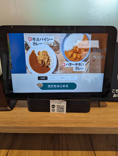 この店舗はC&C,クッキング&コンフォートという業態で、限定メニューやドリンクバーがあるのが特徴。電源もあるが、当然通常の吉野家と同じように利用する方がほとんどだと思うので、どの程度長居していいのか不明。 さて、C&C店舗は通常、店に入るとすぐに対面レジで注文する方式だが、それがあまりにも不評なためか、この店舗では席毎のタブレット注文方式を採用。しかしこの最近良く見る吉野家タブレット、使いづらい。UIが悪いとかそういう話ではなく、そもそも反応しない。あと汚い。 注文後お手洗いやドリンクバーのために席を外すことは多い。水もセルフサービスのこの店舗なら尚更。しかしこのタブレット、注文後に席が使用中であるかどうかが一目で判別不可能なため、なにか荷物を置いていないと席を他人に取られる可能性がある。吉野家に、席に置けるような荷物を持って来店しますか? とにかく、導入してから日が浅いためか、使い勝手が悪い。 注文後、料理ができあがると呼び出されるのでカウンターに取りに行く。都市型の松屋と同じシステム。この後が最悪で、卓上に紅生姜がないので受け取った直後にいっぺんに取らなければならない。こまめに追加する人とは相性が悪すぎる。しかも松屋と違ってお箸などをお盆に乗せてくれていないので、席に着く前に自分で取る必要がある。 食べ終わった後は返却口に食器を戻す。その後有人レジで会計。伝票・スマホ・財布等を持ったうえで食器を返しにいかなければならず、勝手が悪い。そもそも食器を返したあとに会計をするなんていうのは他で見たことがない。異常。C&C店舗が通常前払いであったのは、正解だと思う。