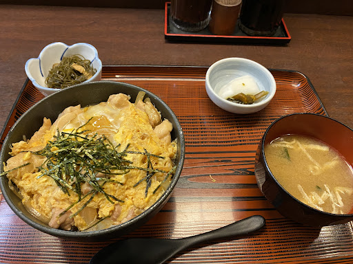 多彩な日替定食に目移りしつつ、時間と懐具合の関係で【親子丼(¥620)】をチョイス。このお値段ですし、メニュー表の画像には丼しか載っていないのですが、「丼&味噌汁&漬物&小鉢」のしっかりした「定食スタイル」で提供されます👍