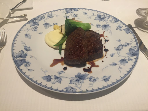 柔らかくジューシーな葡萄牛の赤身、少々筋あり。 ソースもお肉も塩気は強め。 小降りなリーキ?は根っこ付きで良いですね。 舞茸、チンゲン菜なども素揚げでコクが出て美味しい♥️ 厚みがあり程よく歯ごたえのある牛タンは、さっぱりしつつお歳暮のハムみたいな風味。