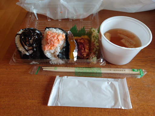 Read more初めて行きました。おに弁とゆうのを頼みました。おにぎりの具をしゃけと昆布にしました。おに弁の中ゎ玉子焼き一切れとちくわの磯辺揚げとたくあんふた切れと唐揚げ1個と味噌汁がついていました。おにぎりゎ中にも具がぎっしり入って三角の上にものってました。とても美味しかったです。ま...