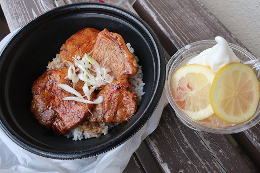 ソフトクリーム屋の隣が定食屋さんだったので、豚丼注文。 こちらも14時以降は店内飲食ダメでテイクアウトのみ。 豚丼は2023年第10回全国丼グランプリ 豚丼部門 金賞受賞 並盛(ご飯300g 肉200g)...