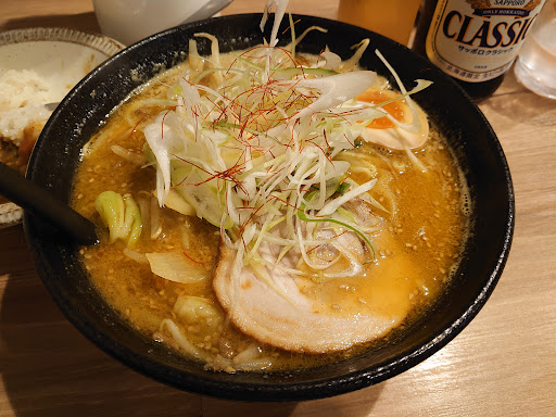 Read more極味噌カレーらーめんとミニホッキカレーをいただきました。 味噌とカレーがバランスよくまろやかで、これぞ北海道!なプリプリの中太ちぢれ麺。そこにたっぷりの挽肉と炒め野菜と白髪ネギ。 ホッキカレーは旨味が予想以上にスゴくてお替りしたかったくらい。 めっちゃ美味しくてお腹いっぱいになりましたよ🤗