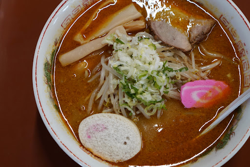 後日カレー味噌に挑戦しました。どろっとしたとろみがなく、サラッとしたまま味噌にカレーの辛さが融合しています!このタイプの味噌カレーは函館の満龍以外にほぼなかったので、ぜひまたあの素晴らしい味をと切望していたのですが、ようやく見つけられました。どろっとしたタイプよりあっさりして食べやすくもたれません。スープが服に飛びにくいのもいい。ただ、注文時にこってりかあっさりを選ばなきゃいけないのですが、こってりはラードで炒めたもやしが入っていて、これがしこたまクドいです。これを入れたからといって美味しくなるわけでもなく、ただただもたれるので次回からあっさり一択です。それと前回来たときよりかなり麺が固かったのが気になりました。道産小麦なのか、モチモチゴワゴワしてるので、しっかり煮...