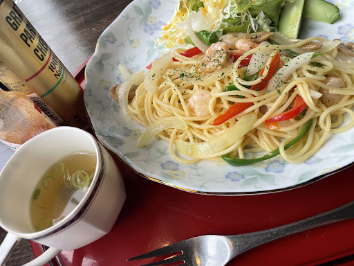 Read more生姜焼き定食です。 柔らかくて大きなお肉が2枚です。 小鉢は、春雨の中華サラダです。 野菜も沢山添えられていて、お味噌汁も美味しいです。 気さくで明るいオーナーさんが、テキパキと動いていて、他にもお客さんがいましたが、早めの提供でした。 ステンドグラスが使わ...